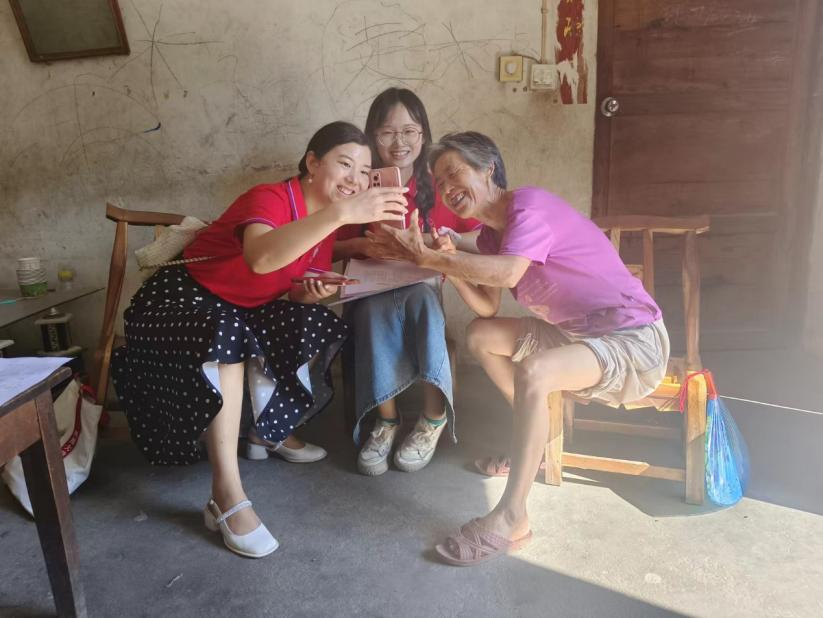(图为走访过程中让暑期留校同学与长期未见的奶奶微信视频通话