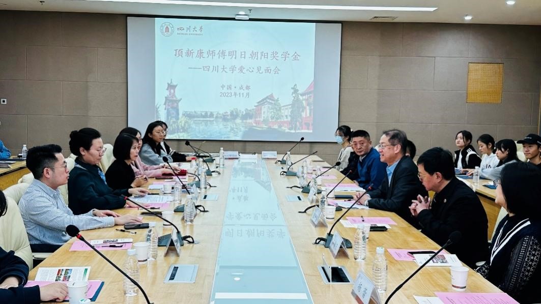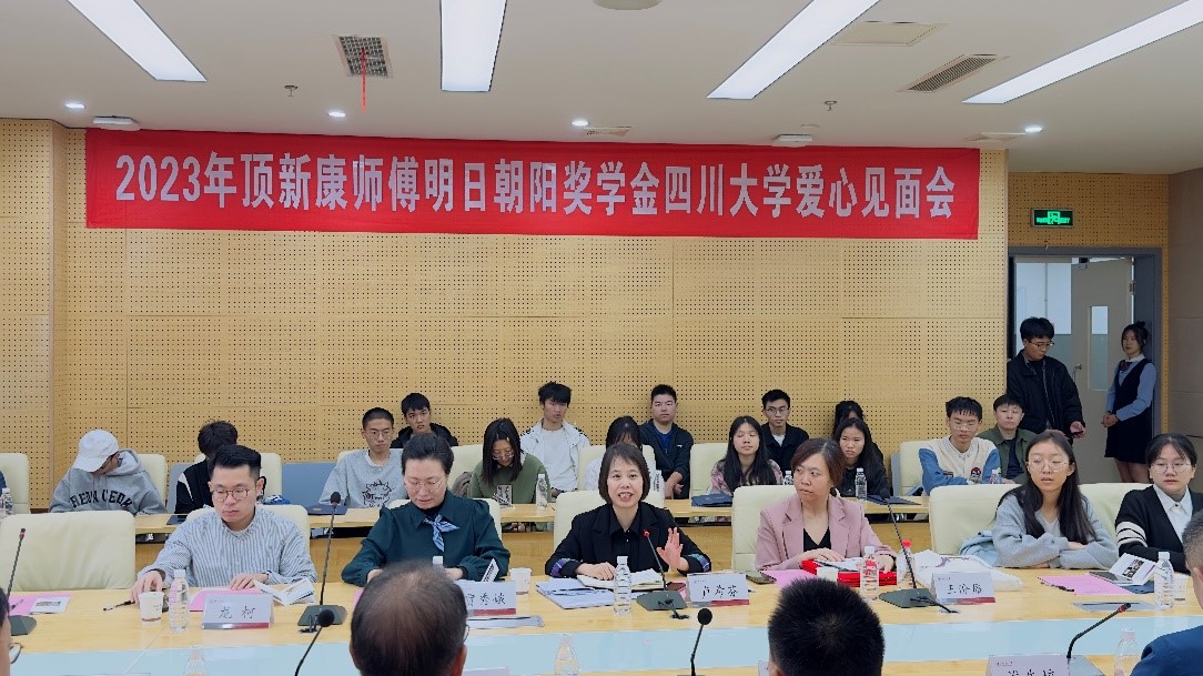 118日上午,顶新康师傅明日朝阳奖学金爱心见面会在江安校区多学科交叉研究创新大楼1020会议室举行。顶新公益基金会理事长滕鸿年一行、四川省台湾事务办公室联络处处长陈磊、以及我校相关单位工作负责人与今年的获奖学生一起参加了本次见面会。