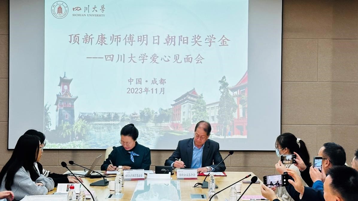 在见面会上,顶新公益基金会与学校教育基金会签订了新一轮捐赠协议,持续三年支持100位同学奖学金,继续为川大学子的成长和发展提供支持和助力。随后,在场嘉宾为今年的获奖学生颁发了荣誉证书。