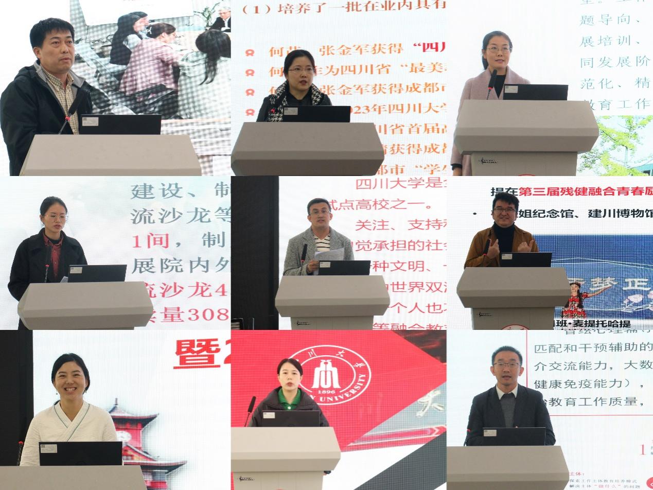 随后,精准思政辅导员工作室等首批九个辅导员工作室围绕团队建设、特色创新、科研成果、学术与工作交流、荣誉表彰和宣传报道等建设情况,依次进行了汇报。专家评审小组结合材料审核与汇报情况,对工作室建设情况予以考核评价。首批九个辅导员工作室顺利通过建设考核。