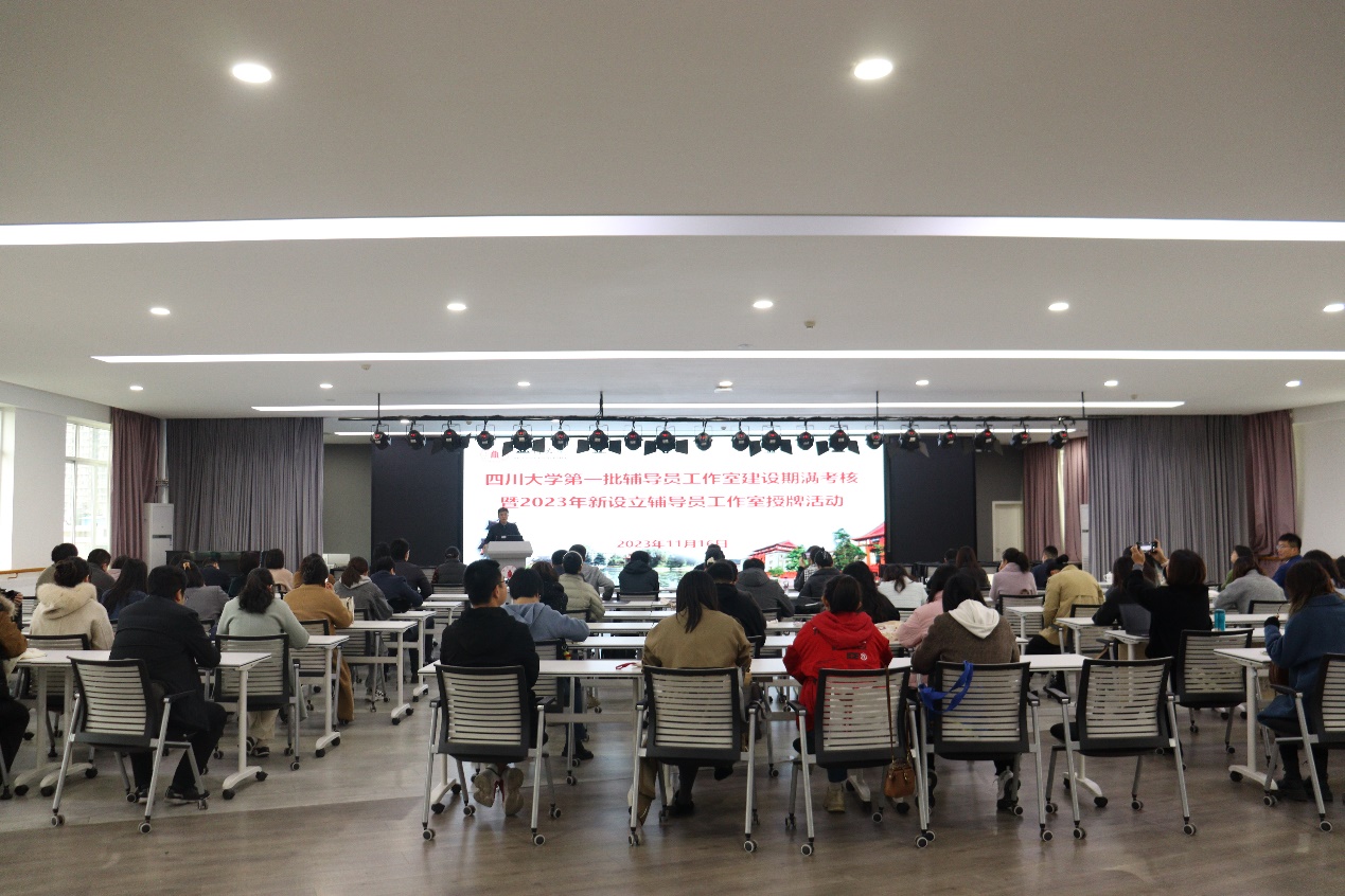 2023年11月16日上午,学校在望江校区文华活动中心6楼多功能厅举行122cc太阳集成游戏首批辅导员工作室建设期满考核暨新设立辅导员工作室授牌活动。校党委副书记李正赤,学校宣传部、社科处、学工部、研工部、校团委、心理健康教育中心、就业指导中心等单位负责人以及122cc太阳集成游戏辅导员工作室成员、辅导员代表等60余人参加本次活动,活动由学工部部长刘晓虎主持。