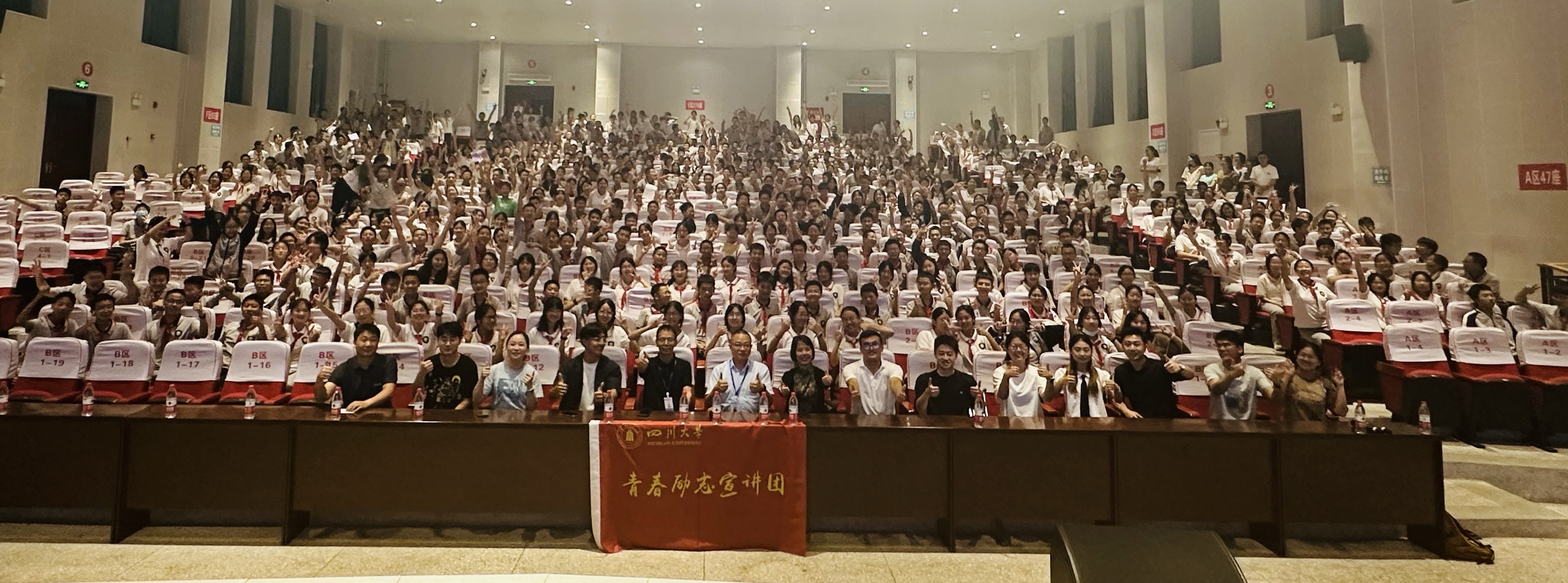6月18日晚,我校青春励志宣讲团来到川师绵竹附中,以“青春飞扬·奋斗当时”为主题,面向该校600余名2022级初中生开展了一场生动的励志报告会。活动由我校商学院2021级财务管理专业的沙拉依丁·麦麦提热依木同学主持。