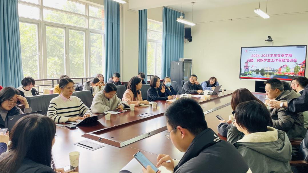 为深入贯彻落实党的二十大精神、二十届三中全会精神,统筹推进我校学生资助与民族学生工作,学生工作部于3月12日在望江校区文华活动中心201会议室召开春季学期资助、民族学生工作专题培训会议,学工部副部长卢希芬、各学院资助专职老师、学生资助中心和民族学生事务办公室全体老师参加了本次会议。