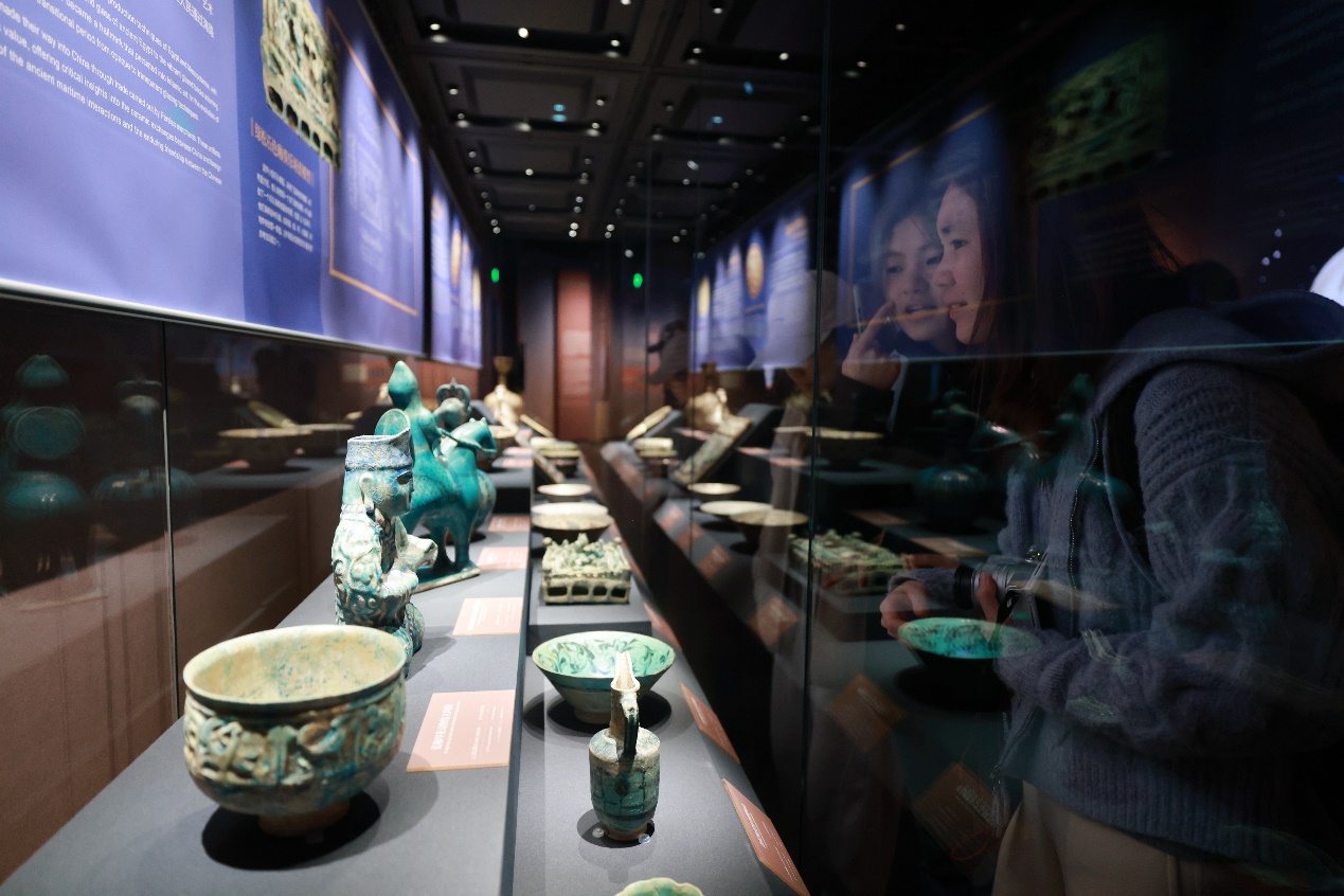 驼铃相闻,舟楫相望。沿着绵延万千公里的陆上和海上丝绸之路,两大文明远行并拥抱。来自新疆的同学感叹:“波斯地毯的几何图案让我联想到家乡的艾德莱斯绸,虽工艺不同,却都体现了对美的极致追求!”在参观过程中,同学们认真聆听讲解员的介绍,深入了解每一件展品背后的历史故事和文化内涵。釉色流转的波斯陶瓷、纹饰璀璨的金属器皿、色彩斑斓的玻璃制品、经纬交织的波斯地毯无不让同学们赞叹不已。这些展呈的文物,讲述多元文明美美与共的永恒主题,书写人类精神交相辉映的壮丽诗篇,为同学们带来一场精妙绝伦的视觉盛宴。