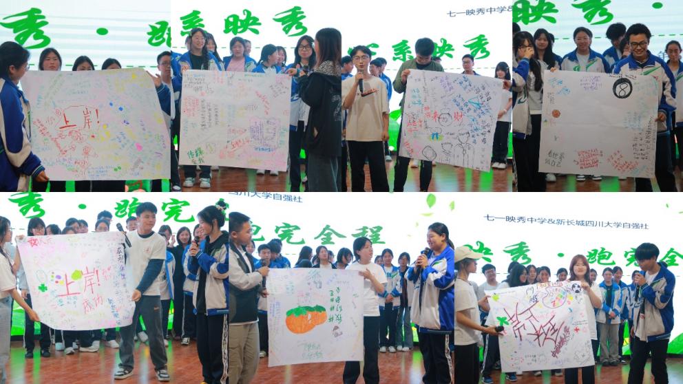 10日的素质拓展现场热火朝天。背夹气球、同舟共济等团队项目让欢声笑语回荡操场,年轻的身影在协作中逐渐靠近。随后“我的故事”分享会上,来自华西临床医学院2023级的志愿者陈敏艳道出突破自我的成长蜕变,文学与新闻学院2024级硕士研究生武心悦分享了自己克服听力障碍的追梦历程,文学与新闻学院2023级黄宝玉讲述了自己对专业选择的坚守。真挚的讲述引发热烈讨论,高中生们纷纷敞开心扉。