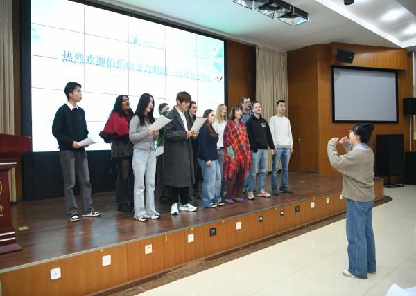 首先,学校国际合作与交流处副处长兼留学生管理办公室主任蒲诗璐致辞,向远道而来的德国伯乐中文合唱团致以最诚挚的欢迎,德方领队张云刚老师进行分享,字里行间流露着对成都的深切情愫与对交流活动的满心期许,他动情表示愿以歌声为纽带,让音符架起心意相通的桥梁。