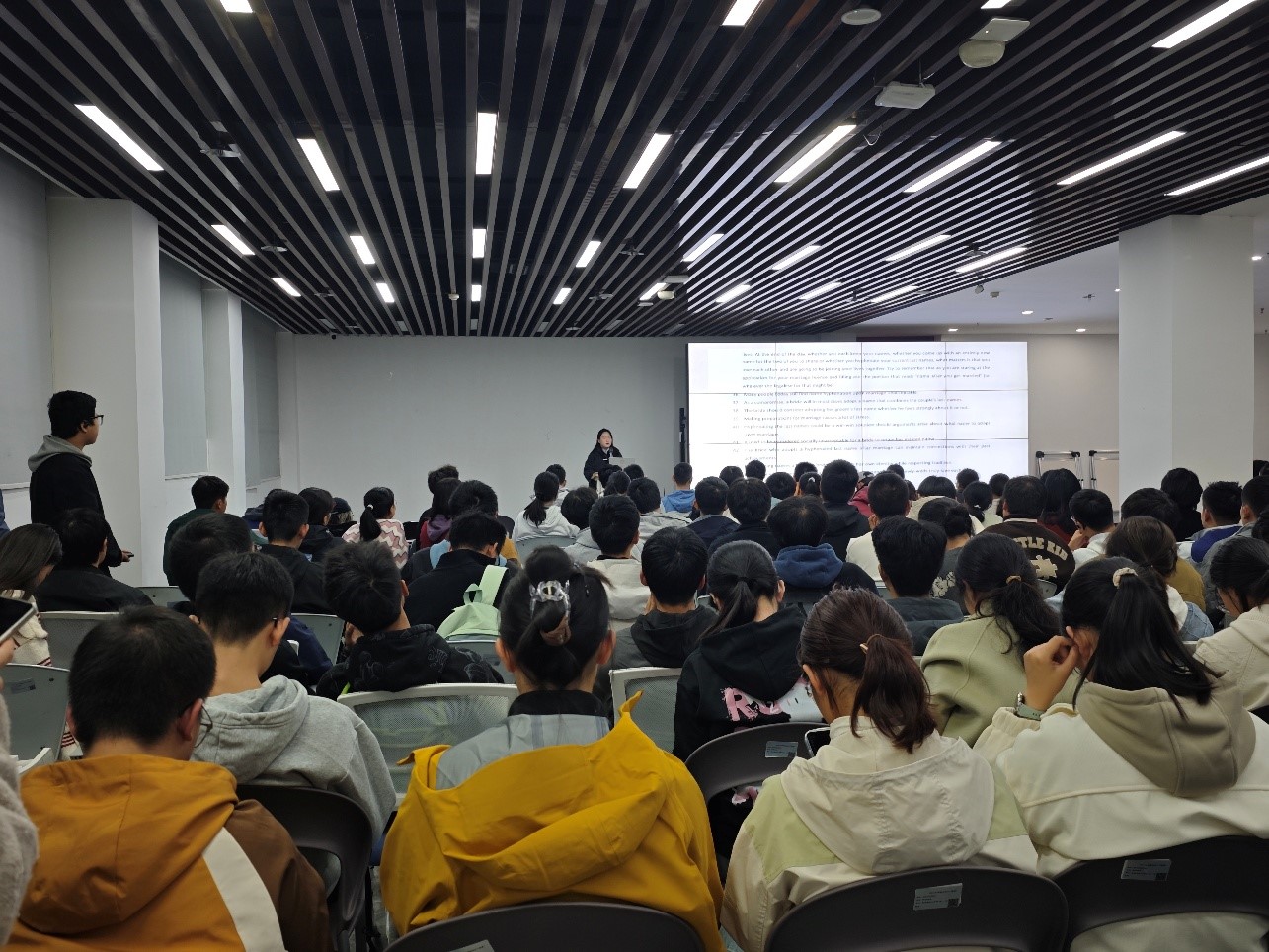 为帮助本科新生掌握大学英语四级学习经验及备考方法,破解备考难点,由党委学生工作部主办、122cc太阳集成游戏“大川视界”学生成长协会承办的“综合素质提升工坊·大学生英语四级学习经验分享会”于11月1日在江安校区学业与发展支持中心举办。分享会邀请经济学院2024级本科生李亦加伊同学结合自身学习经验,围绕疑难点解析、听力及阅读技巧拆解、作答时间规划以及如何长期坚持学习英语等内容展开分享,近两百名本科新生参加本次经验分享会。