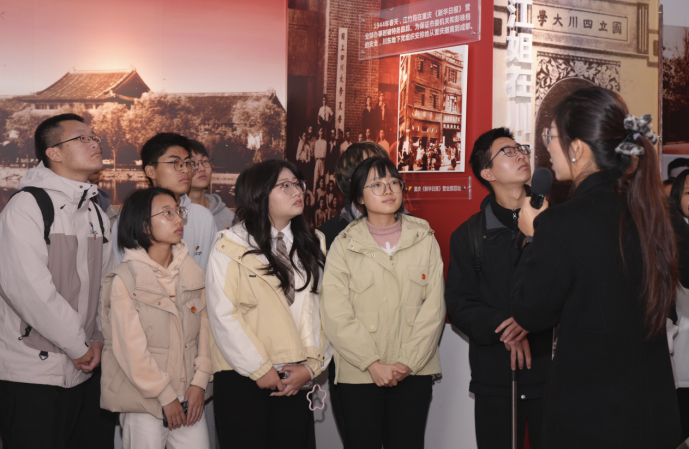 仪式结束后,江姐班同学分班合影留念,并在讲解员带领下走进江姐纪念馆,进一步深入学习川大英烈故事、感悟信仰力量。同学们纷纷表示,有幸成为江姐班的一员,既觉得激动自豪,也感受到沉甸甸责任,未来一定会自觉弘扬江姐精神,让红色血脉在川大赓续不断、让红色基因在川大薪火相承。