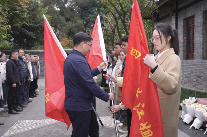 11月21日下午,学校在望江校区江姐纪念馆举行2025年新入选江姐班授旗仪式。校党委副书记刘晓虎,相关单位负责人,新入选江姐班所在学院学生工作负责人、辅导员以及江姐班学生代表100余人参加本次仪式。