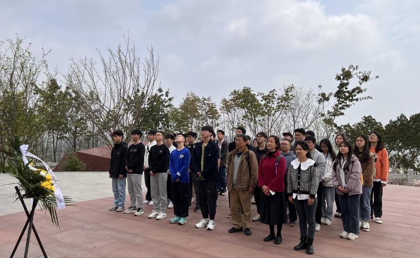 红色研学第三站,师生拾级而上,赴江姐塑像进行献花祭奠活动。江姐塑像高3米,端庄秀美,神采奕奕,微笑着挺立在翠竹寒梅中,生动再现了江姐29岁牺牲时的神韵。学生代表向江姐塑像敬献花圈,师生依次献花并行鞠躬礼,默哀良久,依依不舍。江姐班以及本科社区党支部全体成员,在这片孕育红色基因的土地上,倾听历史回响,接受精神洗礼,以吾辈之名致敬英烈,深情凝望永不褪色的那一抹“红”!