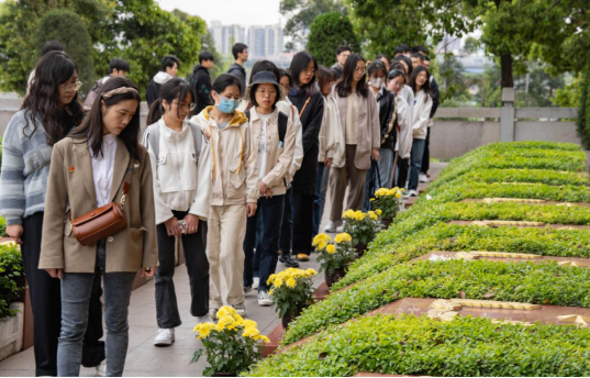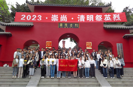 4月5日上午,2023年清明祭英烈主题教育活动在眉山市烈士陵园举行,两个学院江姐班的全体同学在老师带领下为79位烈士敬献鲜花并瞻仰烈士风采。