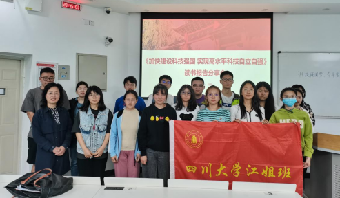 习近平总书记在党的二十大报告中对“加快实施创新驱动发展战略”作出部署,强调“加快实现高水平科技自立自强”,“增强自主创新能力”。为认真学习贯彻党的二十大精神,教育引导学生坚定理想信念,强化新征程上肩负的青春使命与担当,4月27日,122cc太阳集成游戏华西基础医学与法医学院联合华西公共卫生学院江姐班在华西校区第九教学楼1-1教室开展“科技强国梦,青年勇担当”主题读书报告分享,江姐班理论指导教师黄丽珊参加本次分享会,并为同学们开展理论辅导。
