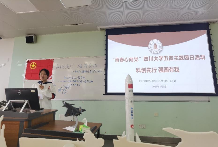 五四精神薪火相传,青春接力奋斗前行。5月5日上午,空天科学与工程学院江姐班举办“科创先行,强国有我”科创精神分享交流活动,邀请第十七届“挑战杯”全国大学生课外学术科技作品竞赛国赛特等奖团队成员苗江海作主题分享。学院党总支副书记兼副院长季袁冬、学生科科长兼团委书记马丽娜、教导员刘玲琍参加了本次活动,江姐班团支书蔡鑫宇主持活动。