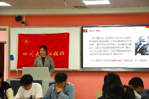 4月25日,电气工程学院2019级江姐班联合本科学生第一、第四党支部在望江校区基础教学楼A414开展读书会,本次研读邀请马克思主义学院黄丽珊老师和电气工程学院团委副书记、江姐班辅导员李程老师进行指导。上午10时,江姐班班长李洋同学宣布读书会正式开始,本次读书会包括马克思主义经典著作导读、《红岩》视频展、研讨交流和“传承江姐精神”倡议书宣读等环节。
