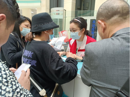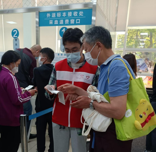 图2:志愿者在采血大厅进行服务