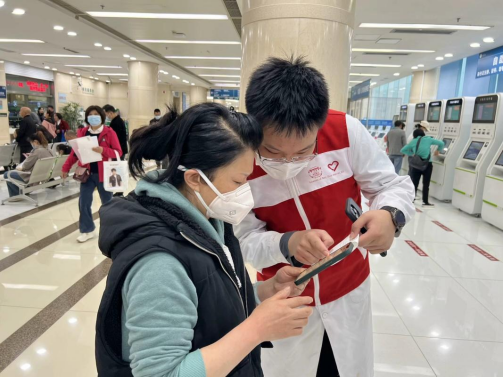 随后,在班委的统筹安排下,江姐班同学分批次参与了本轮志愿服务,为患者和家属提供导医导诊、文明劝导、咨询答疑、协助自助机使用、维护就诊秩序等志愿服务。活动旨在帮助患者更快捷、更准确地找到就诊地点,解答他们的疑问,提高就诊效率,减轻患者的心理压力,提升就医体验。