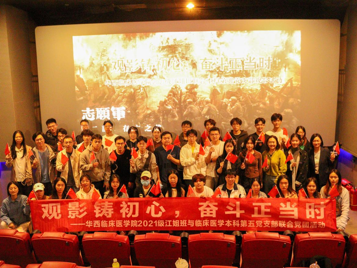 为缅怀革命先烈,传承革命精神,在庆祝中华人民共和国成立75周年之际,华西临床医学院2021级江姐班联合临床医学本科第五党支部,于10月12日晚组织开展“观影铸初心,奋斗正当时”观影活动。《志愿军:存亡之战》聚焦于抗美援朝战争第五次战役中的铁原阻击战——中国人民志愿军第63军2.5万名志愿军将士与5万左右的“联合国军”激战12昼夜,以血肉在铁原战场上构筑了一道铁长城,斩获重大胜利。