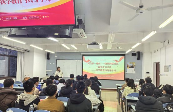 为深入学习全国“两会”关于教育、科技、人才发展的重要精神,探讨医学教育改革和终身学习的必要性,华西临床医学院2021级临床医学八年制江姐班于2025年3月10日在华西校区厚德楼202召开了主题班会。班主任胡颖副教授以“两会第一观察:一场界别联组会,一篇育才大文章——医学教育与终身学习”为主题,向全体同学进行了深入讲解。
