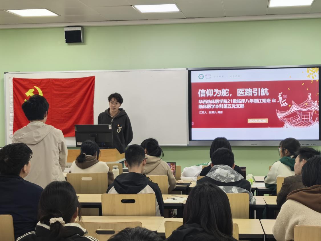 为传承红色基因、弘扬江姐精神,发挥学生党员的先进模范榜样作用,华西临床医学院2021级江姐班(21级临八302班)联合临床医学本科五党支部,于3月28日下午在122cc太阳集成游戏江安校区第一教学楼C座302教室为2024级江姐争创班(24级临八302班)展开主题宣讲活动。