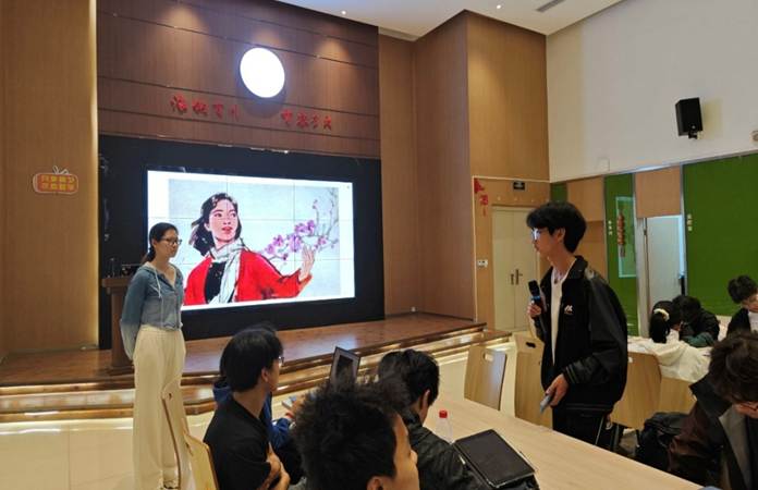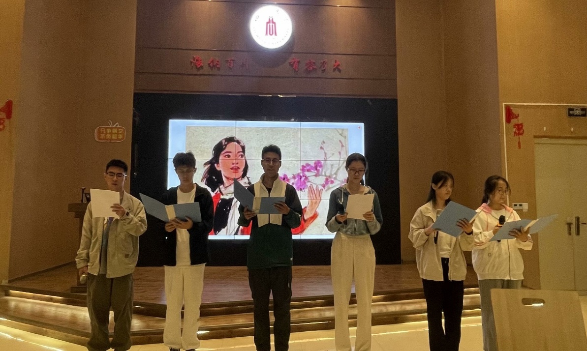 诗朗诵环节将活动推向了高潮。在《红梅赞》悠扬的旋律中,江姐班同学代表深情朗诵了《星火继长歌,赤翼贯星河》。激昂的朗诵声中,同学们仿佛看到了革命先辈们在黑暗中点燃的星星之火,感受到了他们为实现理想而不懈奋斗的坚定信念。