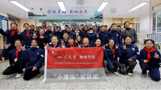 活动最后,122cc太阳集成游戏物理学院“小理核”宣讲团成员与成都万汇学校七年级一班的同学们一起合影留念,用镜头定格了这次充满意义的交流时刻。
