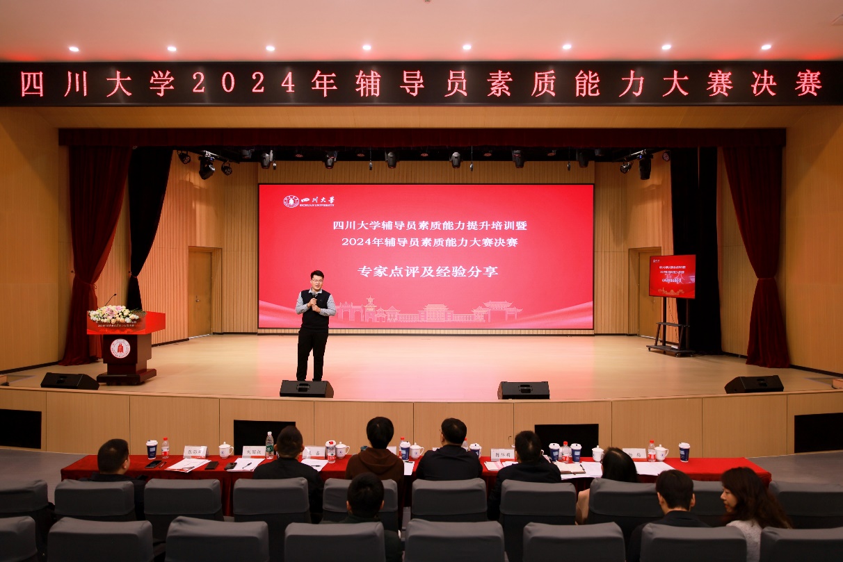 经过初赛、复赛选拔,12名来自文理工医不同学院的一线专职辅导员进入本次决赛。决赛设置案例研讨、谈心谈话两个环节。案例研讨环节,选手结合自身工作经验对案例进行原因剖析、对策研讨与规律总结;谈心谈话环节,辅导员与学生耐心沟通、循循善诱、精准施策,展现了学校辅导员良好的理论功底和扎实的实践工作能力。经过激烈角逐,物理学院唐禹获得2024年辅导员素质能力大赛决赛一等奖;华西口腔医学院杨晟颢、空天科学与工程学院马丽娜以及华西临床医学院邱晨获得二等奖;历史文化学院吴敏、化学学院张若一、马克思主义学院罗俊梅、法学院白宝芬、华西基础医学与法医学院青思含、党委学生工作部夏库拉·卡哈尔、网络空间安全学院隋文馨及文学与新闻学院郑格获得三等奖。同时,华西口腔医学院杨晟颢和空天科学与工程学院马丽娜分别获得案例研讨最佳风采奖和谈心谈话最佳风采奖。