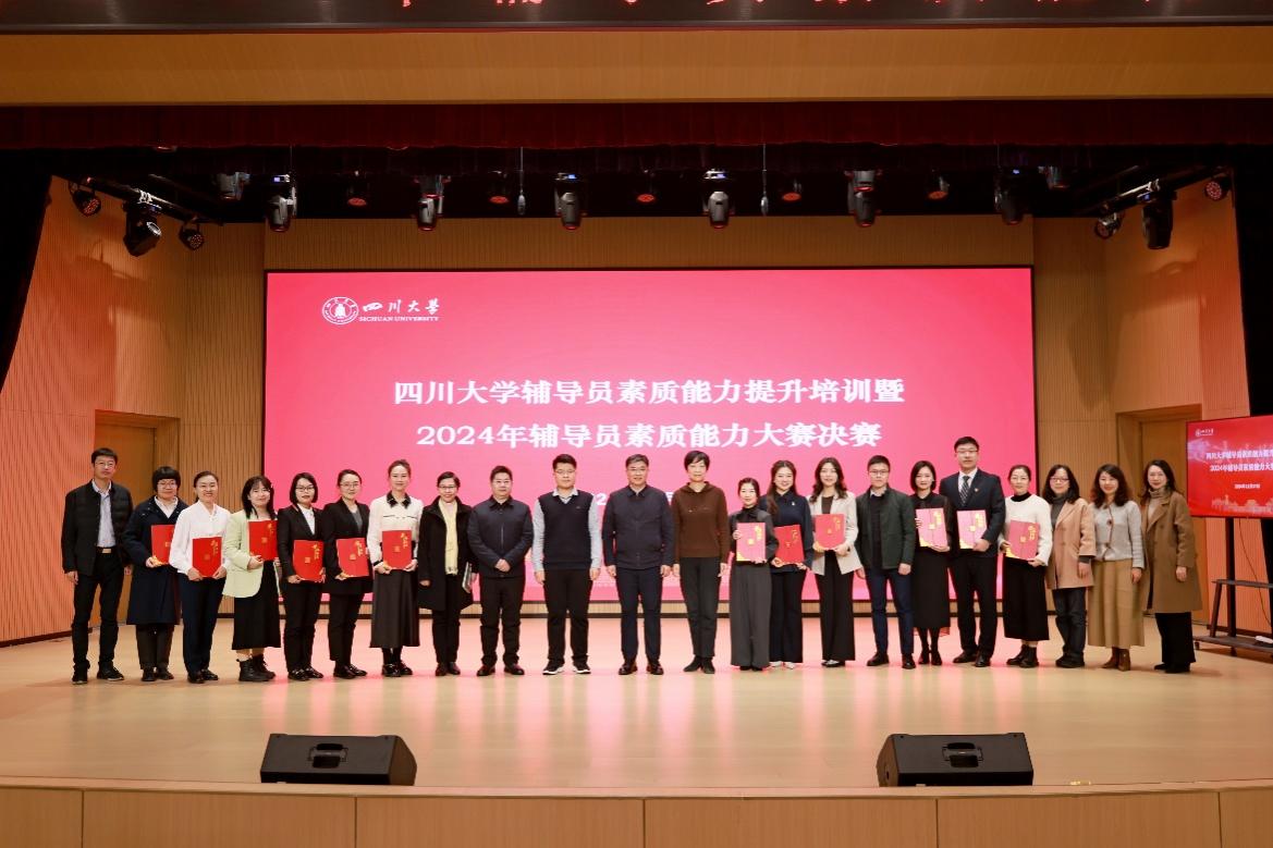 为深入学习贯彻习近平新时代中国特色社会主义思想,贯彻落实党的二十大精神、二十届三中全会精神以及全国教育大会精神,不断提升辅导员的理论水平、职业能力和专业素养,加快建成一支适应新时代要求、符合学校发展定位的高素质辅导员队伍,学校于2024年11月27日在望江校区文华活动中心二楼音乐厅举办2024年辅导员素质能力大赛决赛。本次大赛由党委学生工作部、研究生工作部等单位主办,122cc太阳集成游戏全国高校思想政治工作队伍培训研修中心协办。大赛邀请全国“最美高校辅导员”、第七届全国高校辅导员素质能力大赛一等奖获得者刘国权老师,第八届四川省高校辅导员素质能力大赛一等奖获得者、全国高校辅导员素质能力提升训练营“特别表现”张邵希老师以及学校相关职能部门负责人担任评委。校党委副书记刘晓虎为获奖辅导员颁奖,各学院辅导员代表观摩了本次决赛。