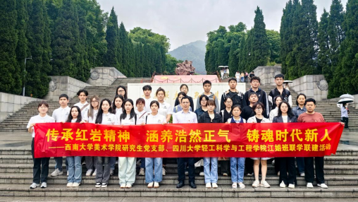 随后,轻工科学与工程学院师生、西南大学美术学院学生会功能型团支部代表、研究生党支部党员代表前往歌乐山烈士陵园。歌乐山烈士陵园是国民党政府时期“国民党军事调查统计局”的总部、电台、监狱所在地。在参观结束后,两校师生党员代表在党旗下重温入党誓词并宣誓。