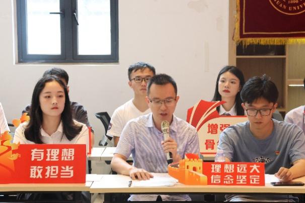 本科生第二党支部副书记钟友、硕士第一党支部书记余雅琪分别对本科生、研究生毕业生党员和班级整体情况进行了汇报,详细介绍了学生党支部学习贯彻习近平新时代中国特色社会主义思想和习近平总书记系列重要讲话精神情况,以及学生党员在学习科研、社会服务、劳动教育德智体美劳全面发展的相关情况。