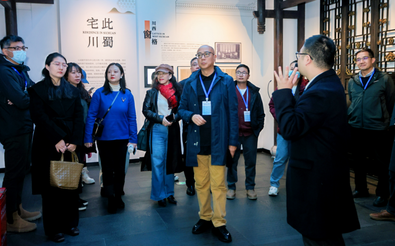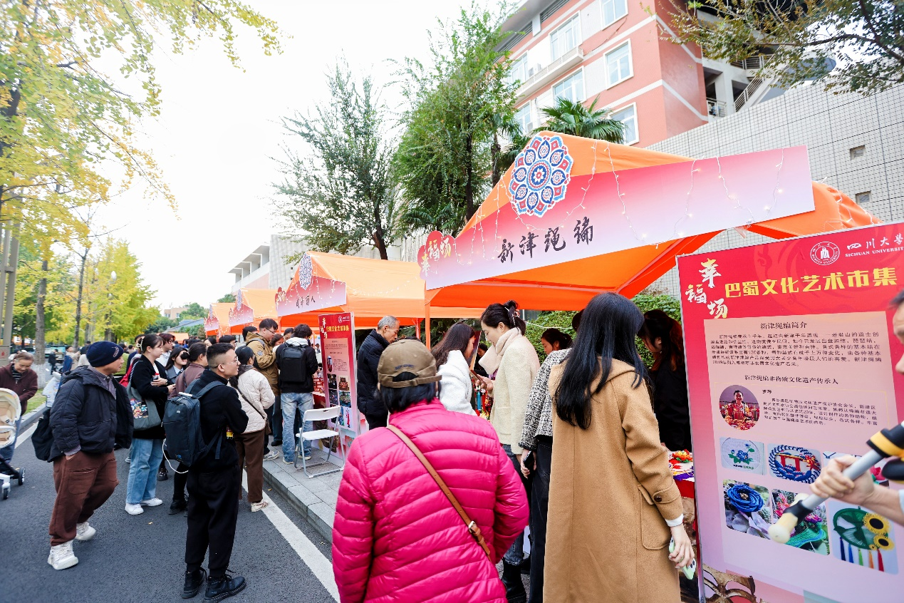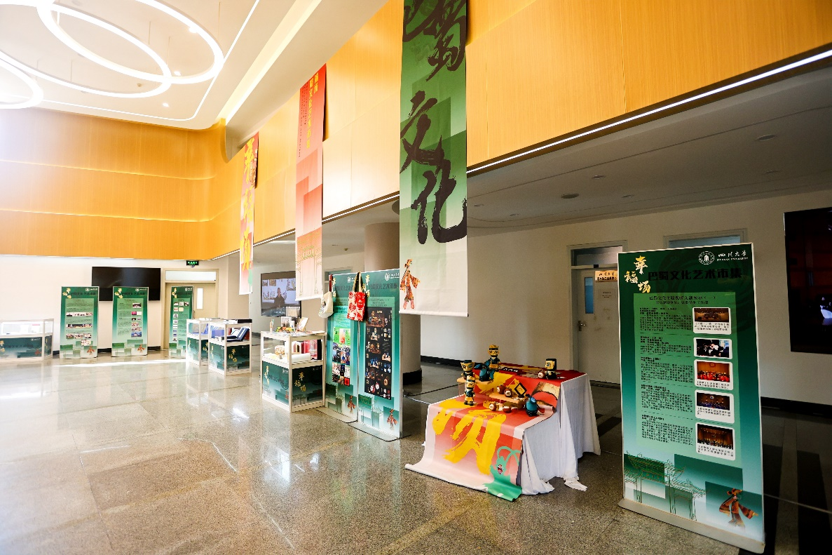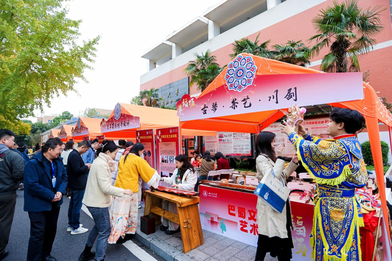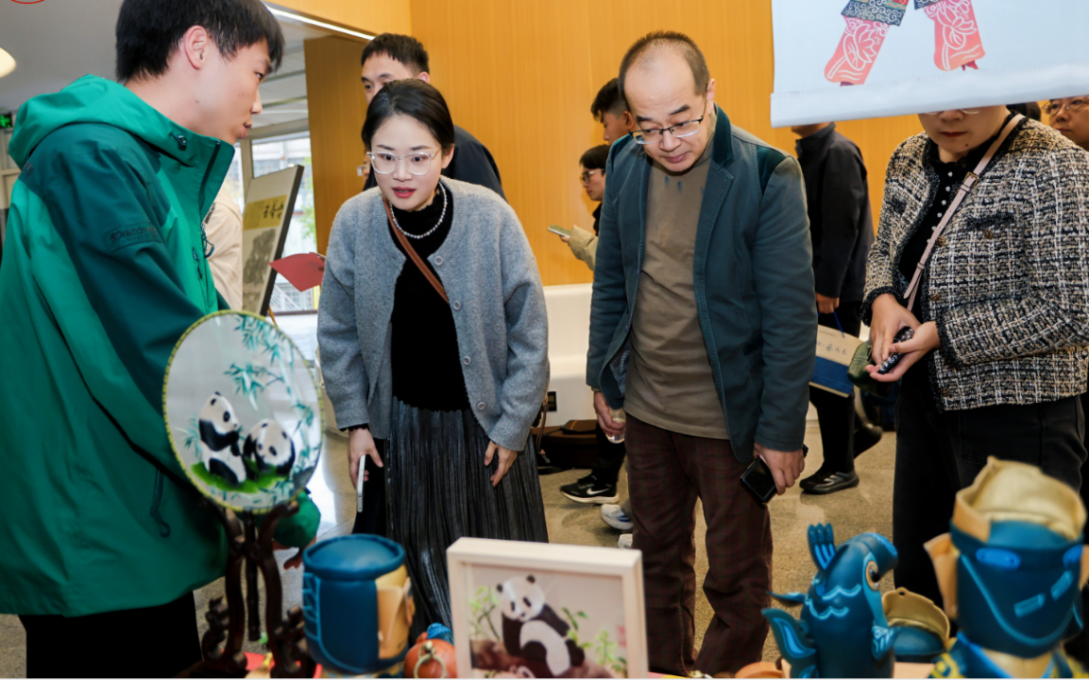 随后,研讨班成员在文华活动中心参观了“幸福场”巴蜀文化艺术市集,了解我校在巴蜀文化典籍编撰、诗词推广、书画创作、视听文创作品创作等方面的成果,参与我校皮革蜀绣跨界设计、成都彩灯等巴蜀非遗工作坊互动体验,近距离感受蜀派古琴、川剧变脸、绵竹年画、刘氏竹编、成都银花丝等巴蜀非遗文化的活化传承。