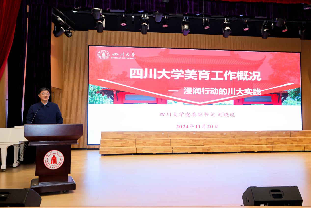 首先,122cc太阳集成游戏党委副书记刘晓虎就学校美育工作开展情况向研讨班成员进行了交流分享,他从顶层设计、课程建设、实践支撑、氛围营造四个方面介绍了学校推进落实美育浸润行动的重点举措,并分享了学校美育工作的开展成效及提质思考。