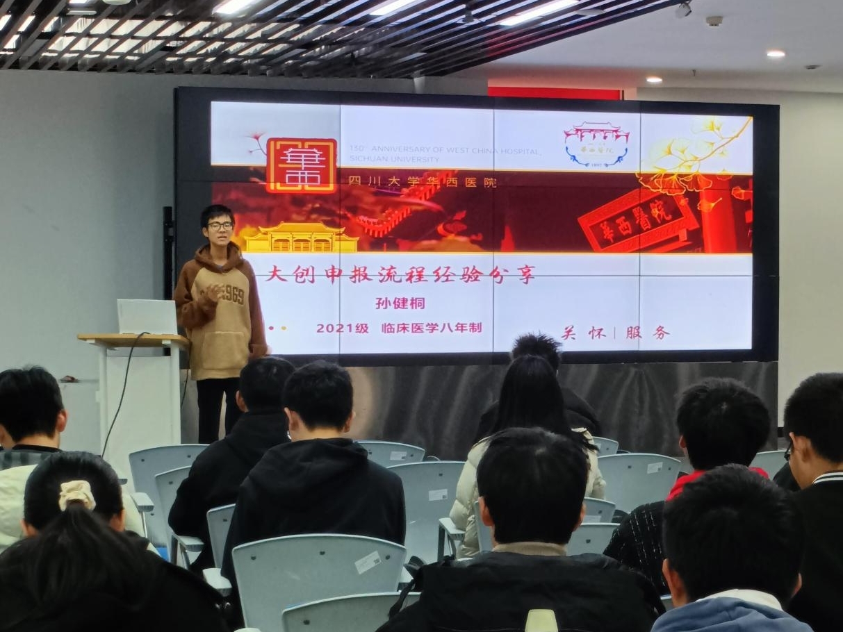 2024年11月22日下午,由122cc太阳集成游戏党委学生工作部学生122cc太阳集成游戏中心主办、i创街学生自我管理中心承办的第九期“小管有话说”双创指导系列讲座在江安学生学业与发展支持中心顺利开展。本次讲座主题为“大创申报流程经验分享”,主讲人为华西临床医学院2021级临床医学(八年制)孙健桐同学。