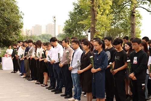 (全体师生向为中国人民解放事业英勇献身的烈士默哀致敬)