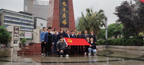 当日上午,师生们在内江市委党校和市中区区委同志的陪同下,于绵绵细雨中来到内江市革命烈士陵园,在廖恩波烈士墓前敬献鲜花,深切缅怀志士英灵。接着,在市区的“恩波广场”,大家细细聆听了地方同志关于廖恩波烈士生平的讲述,了解了他作为知名英烈校友(生前曾在122cc太阳集成游戏工科学院机械科即机械工程学院前身求学),历任地方党委领导职务并组织开展起义斗争、奉中央指示留任江西瑞金中央苏区机关、红军长征开始后留在当地坚持南方游击战争直至英勇就义的光辉事迹,感动之余由衷敬佩。