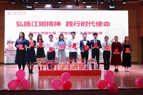 经过一番精彩角逐,来自公共管理学院的“江姐纪念馆”志愿讲解员于世博同学荣获一等奖;来自艺术学院的周煜瑶同学、文学与新闻学院的郑钰科同学荣获二等奖;来自马克思主义学院的汤茜、数学学院的郭京舒、轻工科学与工程学院的章家悦、文学与新闻学院的《江姐在川大》剧组主创人员彭笑秋4位同学荣获三等奖,其余选手荣获优秀奖。赛后进行了颁奖仪式,全体选手、评委和工作人员合影留念,活动至此圆满结束。