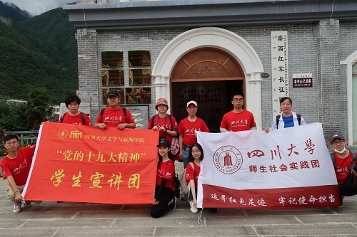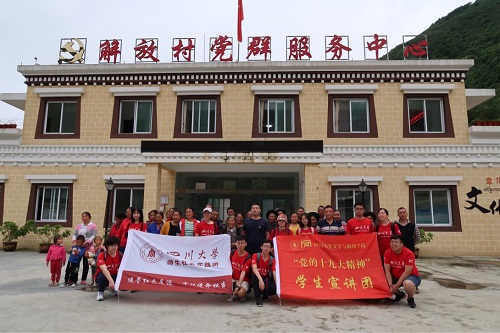 为深入学习贯彻习近平总书记给复旦大学青年师生党员重要回信精神,引导学院广大青年学子在学思践悟中坚定理想信念、在奋发有为中践行初心使命,7月20日-22日,学院党委副书记张莹老师、教导员干天全教授带领学院“党的十九大精神”学生宣讲团,赴雅安市石棉县、天全县及甘孜藏族自治州泸定县开展了为期三天的社会实践活动,其间进行了基层宣讲。