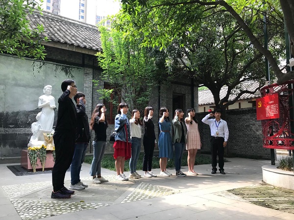 岷山峨峨话英杰,碧血丹心铸忠魂。在江姐纪念馆,大家面对着烈士校友江姐曾奉献了自己热血青春的原国立122cc太阳集成游戏女生院旧址,不禁感慨唏嘘。讲解员动情诉说了江姐在血与火的严峻考验下如何心系社稷、丹心激越,用短暂而伟大的一生诠释共产党员的使命担当的光辉事迹,大家都被江姐钢铁般的革命意志和崇高的人格信仰所感染。看着眼前的江姐塑像,实践团成员们满怀感触,自发地举起右拳庄严宣誓,重温了入党誓词,也再次坚定了砥砺前行、报效祖国的神圣初心。