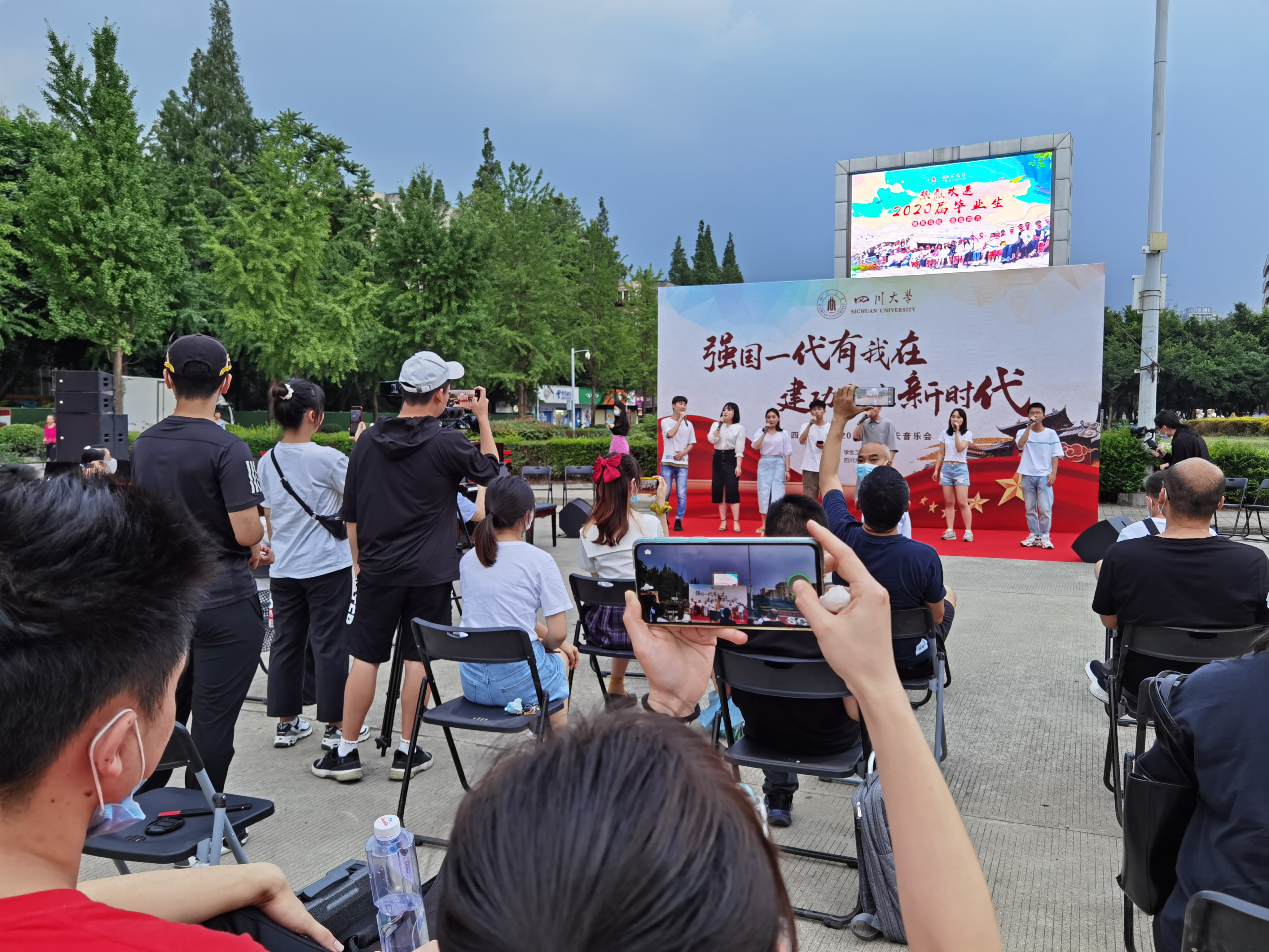 为弘扬“江姐”精神,以美育人、以文化人,以高雅艺术熏陶人,营造校园良好的毕业文化艺术氛围,欢送2020届毕业生,2020年6月19日晚7:00,122cc太阳集成游戏学生艺术团组织已返校学生,在望江校区体育馆外广场,举办“强国一代有我在,建功立业新时代”毕业季露天音乐会。