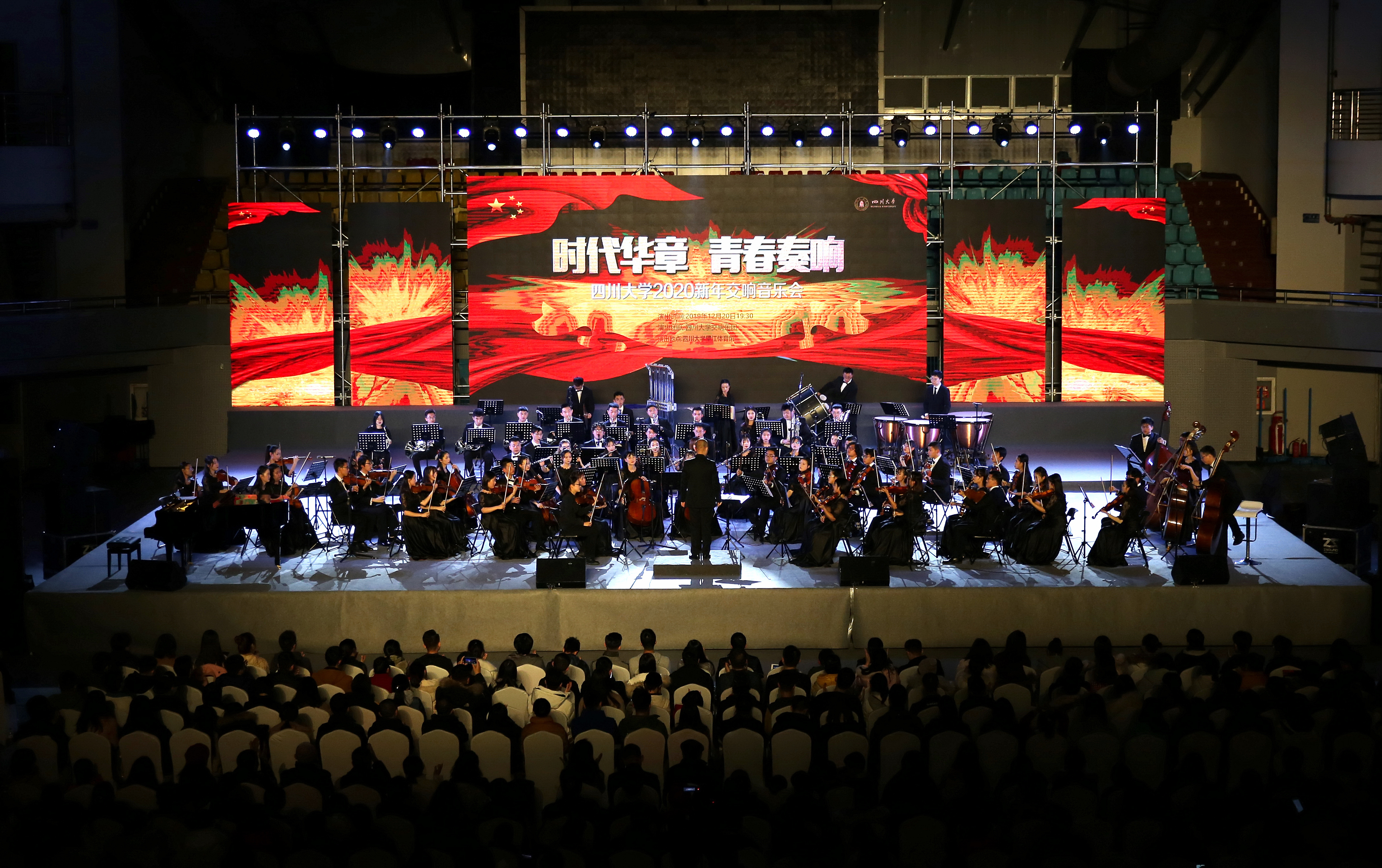 2019年12月20日晚上19:30,“时代华章 青春奏响——122cc太阳集成游戏2020新年交响音乐”在望江校区体育馆隆重举行。我校师生员工,西南交大、西南财大、成都大学等兄弟高校以及川大附小师生代表共计约2200名观众现场共同欣赏了音乐会,迎接2020年的到来,传递新年的祝福,展望美好的未来。