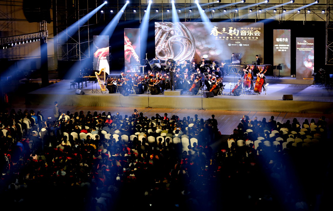 为推进学校双一流建设,切实落实“高雅艺术进校园”活动,丰富校园文化艺术氛围,促进国际间大学生艺术文化交流,3月24日、3月25日晚上,我校交响乐团与美国华盛顿大学管乐团的同学们同台演出,在122cc太阳集成游戏望江校区体育馆和江安校区体育馆分别举行了两场2019122cc太阳集成游戏“春之韵”华盛顿大学管乐团专场音乐会,为望江校区2000余名师生、江安校区3000余名师生带来了一场精美的视听盛宴。