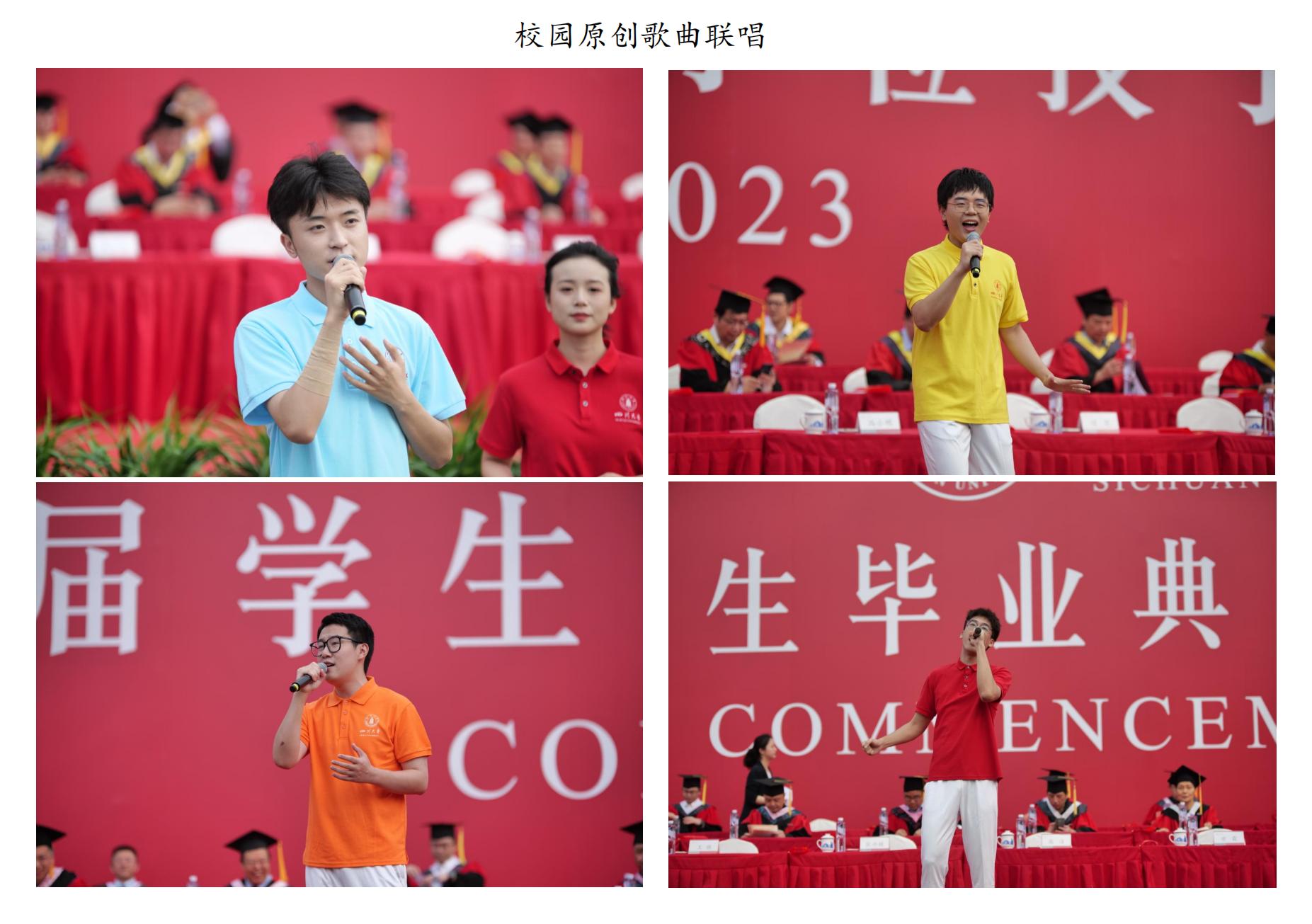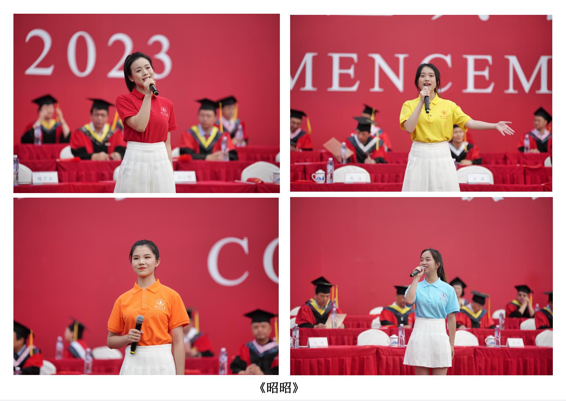 更值得一提的是,歌曲联唱部分的三首校园原创歌曲——《青春的模样》《昭昭》《约在某年东南季风吹过后去看海》,它们都是来自于2022年“我的青春我的歌”122cc太阳集成游戏校园歌曲原创征集比赛的获奖作品。三首歌曲由川大学子进行词曲创作,经过学工部艺术教育中心老师指导,首次亮相即是学校2023届毕业典礼暨授位仪式的暖场演出,由原创学生作者和学生合唱团团员共同演绎。让我们再来听听这专属川大学子的青春旋律,真正属于我们的毕业歌。