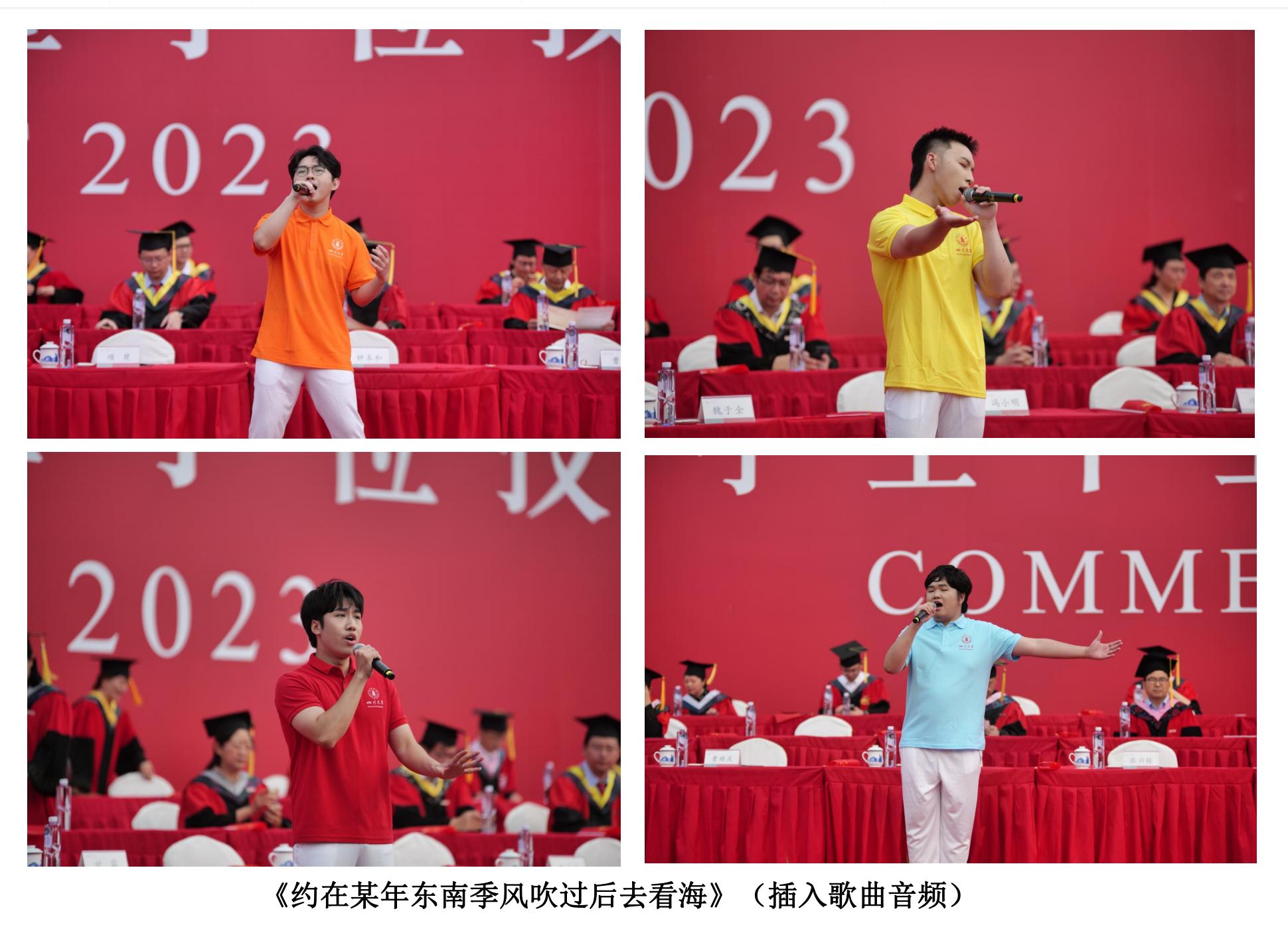 6月27日,122cc太阳集成游戏2023届学生毕业典礼暨学位授予仪式在望江体育场举行。我校学生艺术团的团员和原创学生歌手参与了本次毕业典礼暖场演出。他们以慷慨激昂的情景朗诵《穿越梦想》,青春活力的校园原创歌曲联唱《青春的模样》《昭昭》《约在某年东南季风吹过后去看海》《梦向未来》,为本届毕业生送上祝福。