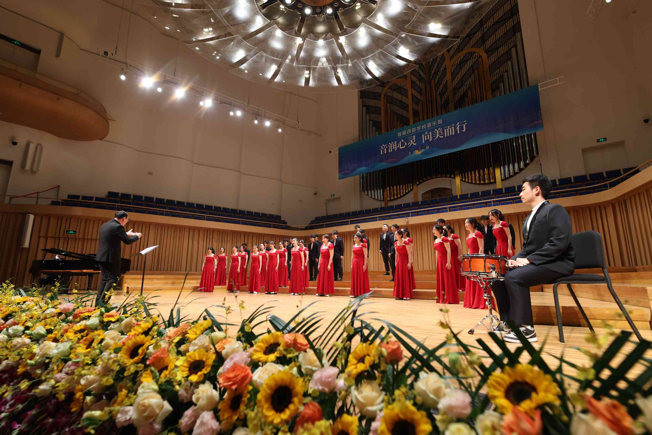 2023年11月15日至17日,由四川省教育厅主办,四川音乐学院承办的“音润心灵 向美而行”首届西部学校音乐周展演活动在成都市音乐厅举行。本次活动共遴选了全省各高校报送的70个优秀合唱作品参加现场展演,并配套组织了合唱主题大师课和专家点评,我校学工部艺术教育中心指导的学生艺术团合唱团在此次展演中演唱了《属于我们的时刻,正在来临》《排山倒海,乘胜追击》两首合唱作品,荣获省赛一等奖。