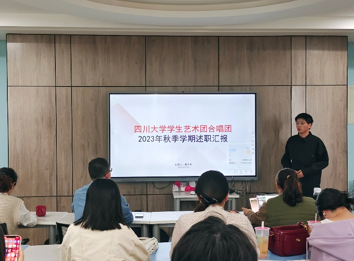 会议伊始,学生合唱团、民乐团、交响乐团、管乐团、戏剧团、舞蹈团、钢琴队、美术社、“美育大川”新媒体中心等9个团队轮流上台就2023年团队工作开展情况进行了述职报告,分别从工作推进、团队建设、现存问题、工作思考等方面进行总结汇报,对2024年度工作计划进行介绍。