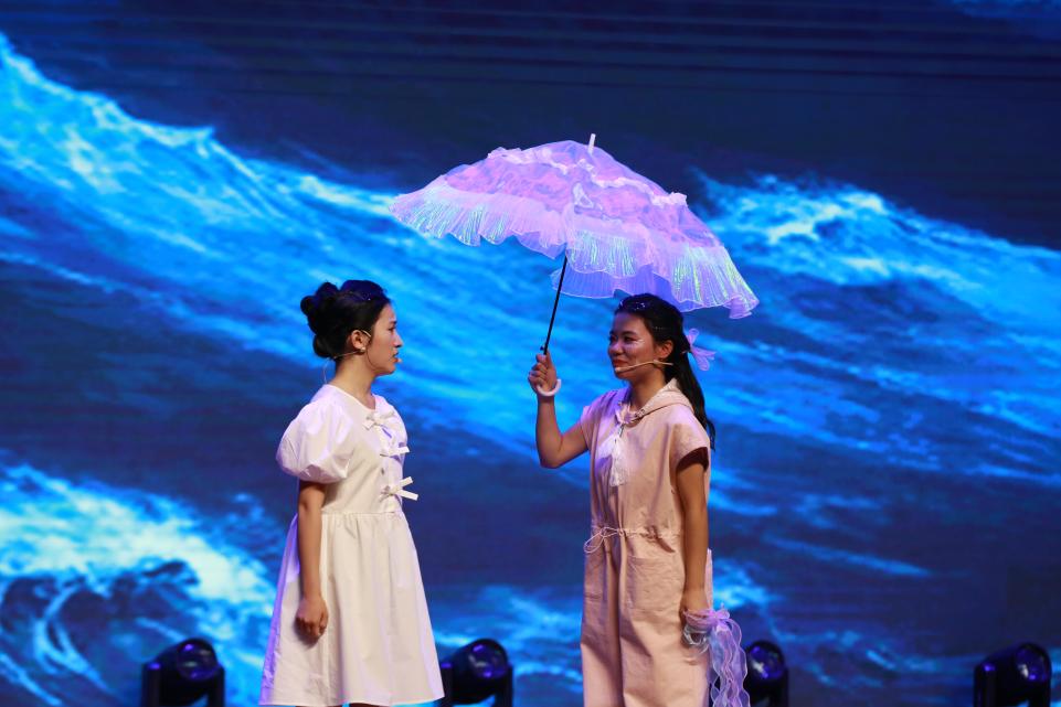 据悉,经过三个月的精心编创和打磨,主创师生团队一步一个脚印地完成了作品创排优化及参演组织工作,助力《无用之海》从校赛走向国赛的舞台。期间,戏剧团学生骨干韩沐慕、温静然担任编剧,学工部艺术教育中心王月琳老师提供专业指导,马琳、唐琳佳老师担任导演,正是多方齐心协力,才有了《无用之海》的精彩呈现。