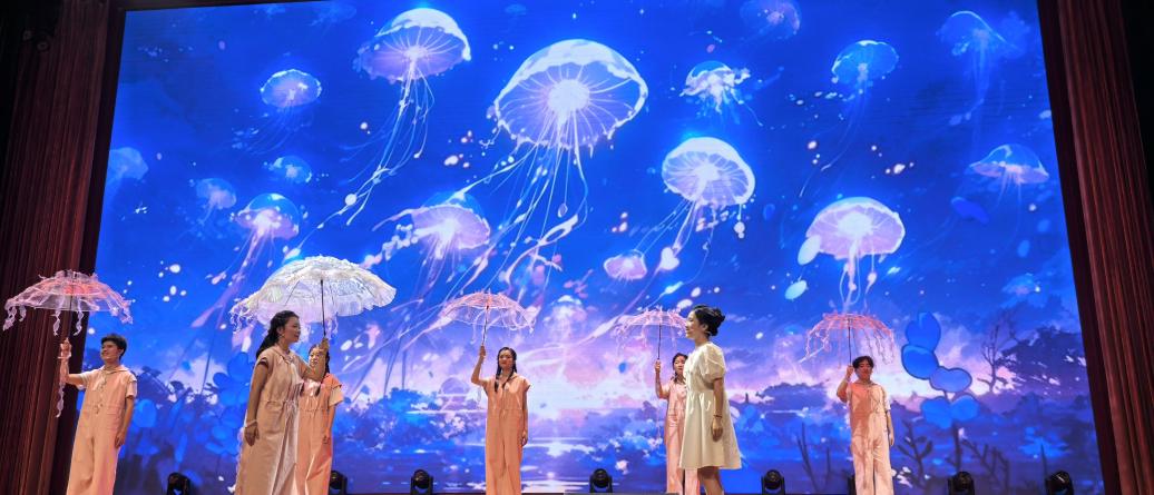 在本次展演中,学生戏剧团原创心理情景剧《无用之海》通过校赛选拔晋级国赛,经历国赛初评与大众网络评审,从全国400余所高校的参赛作品中脱颖而出,成功入围现场展演,与北京大学、上海戏剧学院等高校选送的31部优秀作品同台竞技并获得高度评价。