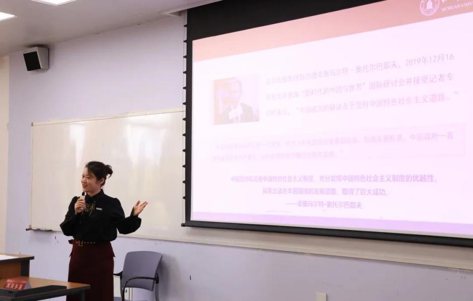 王丽鸽老师以“邮路”“心路”“道路”为主线,围绕“看雪山邮路变迁,讲十年伟大变革”主题进行了授课,鼓励同学们要接续传承党在新时代奋斗中铸就的伟大精神,积蓄力量走好新时代的长征路。