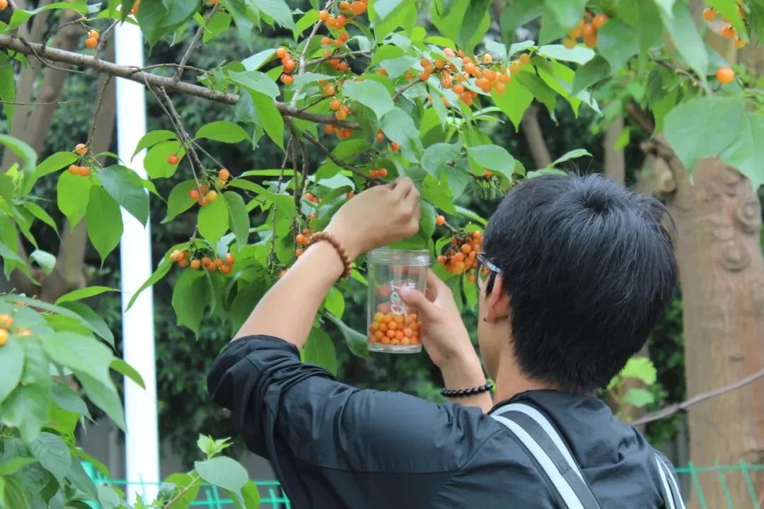 同学们吃着亲手采摘的樱桃,直呼“min甜”!甜的不只是樱桃,还有一起体验丰收乐趣的甜蜜时光。这得益于同学们日常积极的果树养护,才有了“开心农场”的丰收胜景。