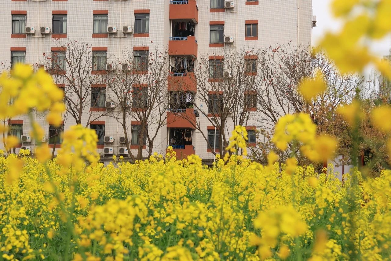 耀眼的黄花在蓝天下,映出春日的生机,油菜花一朵朵、一簇簇,绽开在春光无限的川大,四月在满目金黄中得以具象。