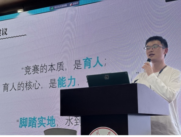 最后,余一凡同学总结了自己参加竞赛以来的收获和感悟。他说:“竞赛的本质,是育人;育人的核心,是能力,不是奖项。”他认为,参赛时不要以获奖和加分为目标,更应以学习的心态享受竞赛的过程,在挑战里把握机遇,在机遇中提升自我,把竞赛当做“快速突破的高能时空”不断磨砺自己的勤奋与意志锻炼执行能力训练科研和商业思维能力提高语言表达能力在竞赛中进步成长,做到“脚踏实地,水到,渠成。”